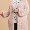 Umgee Full Size Ribbed Hem Open Front Longline Cardigan Plus Size – Blush Pink