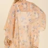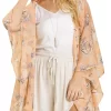 Umgee Full Size Sheer Mixed Print Kimono with Side Slit Plus Size – Peach Mix