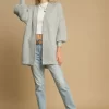 Umgee Full Size Wool Blend Open Front Lantern Sleeve Cardigan Plus Size – Light Gray