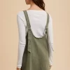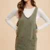 V-Neck Adjustable Strap Denim Overall Dress With Pockets – Army Green
