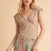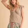 V-Neck Cap Sleeve Cropped Top – Mocha