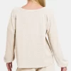 V-Neck Long Sleeve Ribbed Top and Shorts Set – Beige