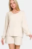 V-Neck Long Sleeve Ribbed Top and Shorts Set – Beige