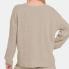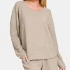 V-Neck Long Sleeve Ribbed Top and Shorts Set – Khaki