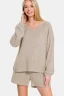 V-Neck Long Sleeve Ribbed Top and Shorts Set – Khaki