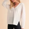 A V-neck long sleeve top is a versatile and classic wardrobe staple. The V-neckline adds a flattering touch to the neckline, while the long sleeves make it suitable for cooler weather or layering. This top can be dressed up or down, making it a go-to piece for various occasions and styling options.