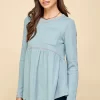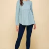 Waffle Knit Babydoll Top with Left Pocket Detail – Sea Blue