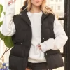 Waist Drawstring Detail Puffy Hoodie Vest – Black