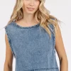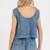 The Washed Denim Distressed Detail Crop Tank is a fashion-forward piece that exudes casual cool vibes. With its washed denim fabric and distressed detailing, this tank top offers a laid-back and edgy look perfect for everyday wear. The cropped silhouette adds a modern touch, making it a versatile piece that can be styled in various ways. Pair it with high-waisted jeans or shorts for a trendy and effortless ensemble. Embrace a rugged and relaxed aesthetic with the Washed Denim Distressed Detail Crop Tank as a key staple in your wardrobe.