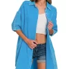 Washed Double Gauze Button Down Shirt Dress – Deep Sky