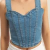 Washed Sweetheart Neck Wide Strap Denim Tank – Light
