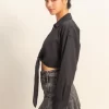 The Washed Tie Front Crop Top is a trendy and versatile wardrobe piece. Featuring a washed fabric finish and a stylish tie front detail, this crop top offers a laid-back and chic aesthetic. Perfect for pairing with high-waisted bottoms, this top is a must-have for creating effortless and fashion-forward looks.