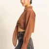 The Washed Tie Front Crop Top is a trendy and versatile wardrobe piece. Featuring a washed fabric finish and a stylish tie front detail, this crop top offers a laid-back and chic aesthetic. Perfect for pairing with high-waisted bottoms, this top is a must-have for creating effortless and fashion-forward looks.