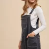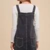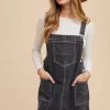 Wide Strap Denim Overall Dress With Pockets – Black