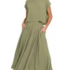 Woven Crinkle Gauze Crop Tee and Skirt Set – Lt Olive