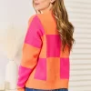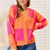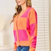 Woven Right Checkered V-Neck Dropped Shoulder Cardigan – Hot Pink