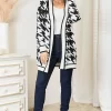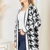 Woven Right Houndstooth Open Front Longline Cardigan – Black