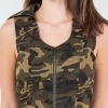 Zip Up Camo Crop Denim Vest – Olive Camo