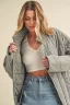 Zip Up Drop Shoulder Quilted Washed Jacket – Gray